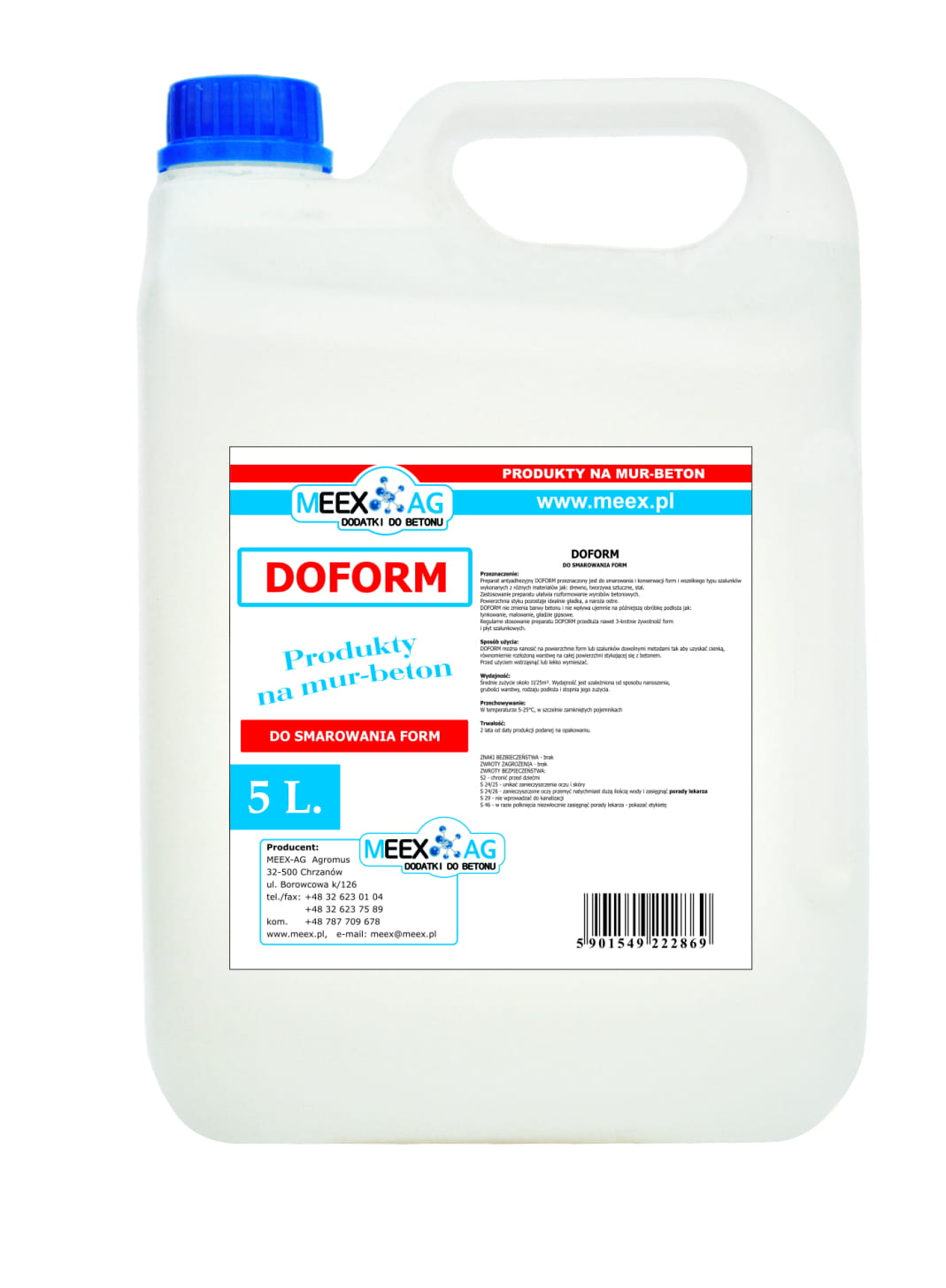 DOFORM jest środkiem pomocniczym, na bazie mikronizowanych wosków, ułatwiającym oddzielenie formy/szalunku od betonu. Stosowanie DOFORMU zmniejsza ryzyko uszkodzeń wyrobów betonowych podczas ich rozszalowywania. Nie pozostawia przebarwień oraz nie pogarsza przyczepności powierzchni. Pozwala uzyskać wysoką gładkość rozformowanych elementów. Przeznaczony do smarowania i konserwacji form i wszelkiego typu szalunków. Regularne stosowanie preparatu przedłuża nawet 3-krotnie żywotność form i szalunków.