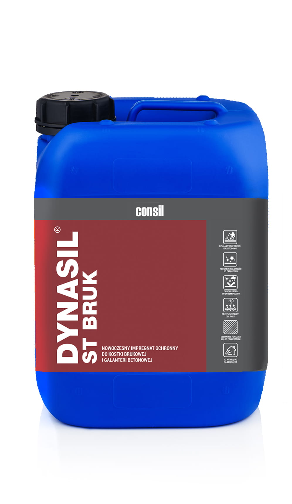 Dynasil® ST-bruk jest gotowym do użycia, wysokiej jakości, nowoczesnym środkiem hydro – i oleofobizującym , przeznaczonym do impregnacji ochronnej betonowej kostki brukowej przed wodą i powstawaniem tłustych plam np. po oleju silnikowym. Dynasil® ST-bruk, jest impregnatem, opartym na innowacyjnej technologii fluorosilanów, dzięki czemu posiada doskonałe właściwości ochronne o bardzo szerokim spektrum działania. Zabezpieczone Dynasil® ST-bruk, podłoża wykazują doskonałe właściwości hydrofobowe, odporność na wnikanie tłuszczy i rozwój mikroorganizmów. Tworzenie trwałych wiązań z zabezpieczoną powierzchnią gwarantuje, długotrwałą i kompletną ochronę powierzchni zarówno wewnątrz jak i na zewnątrz pomieszczeń. Impregnat nie zatyka porów i kapilar dzięki czemu nie zmienia naturalnych właściwości „oddechowych” podłoża. Zabezpieczone Dynasil® ST-bruk powierzchnie wykazują dużą odporność chemiczną na działanie alkoholi, rozpuszczalników, kwaśnych płynów i innych zabrudzeń.